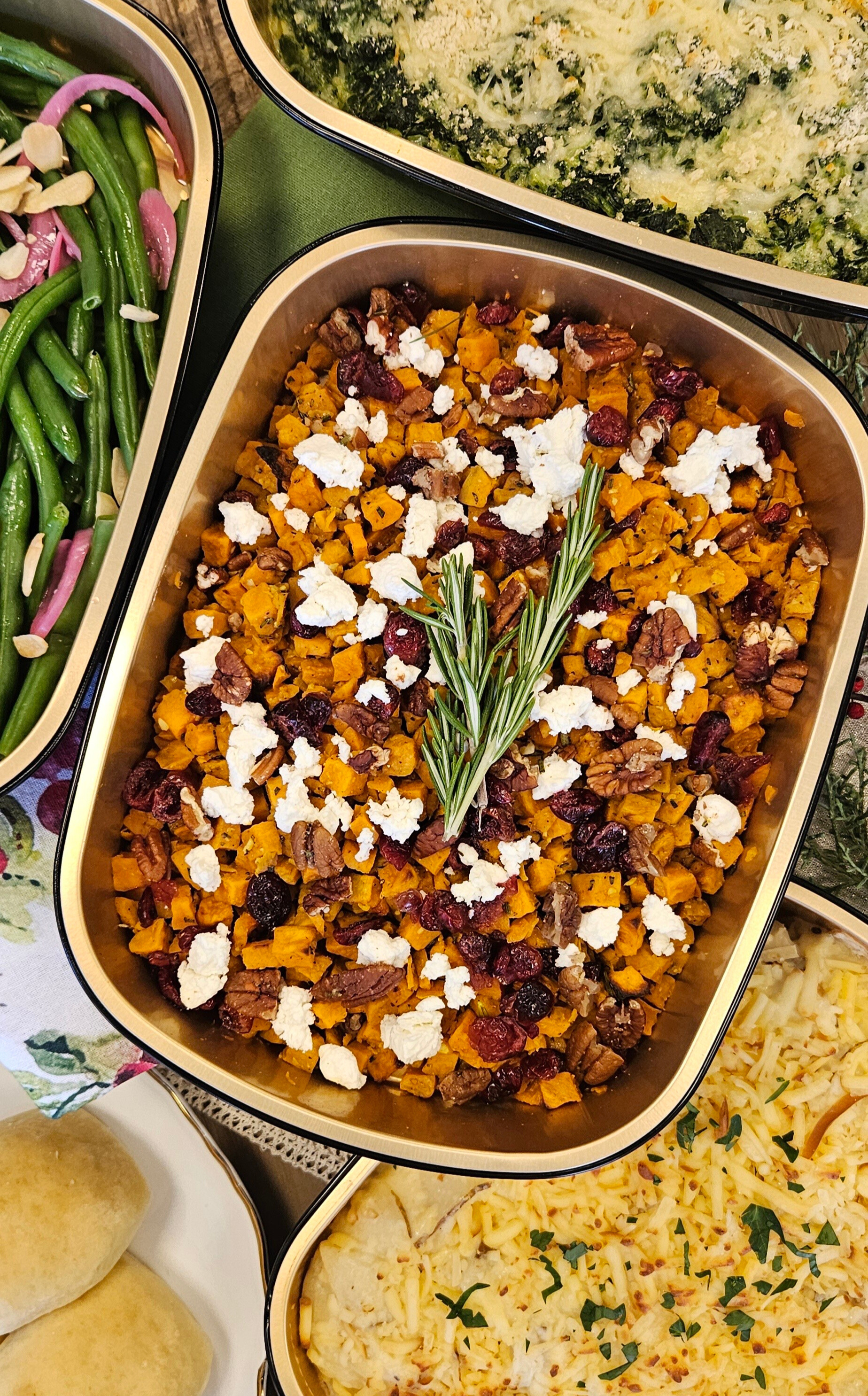 -Cranberry, Candied Pecan, & Goat Cheese Roasted Sweet Potatoes