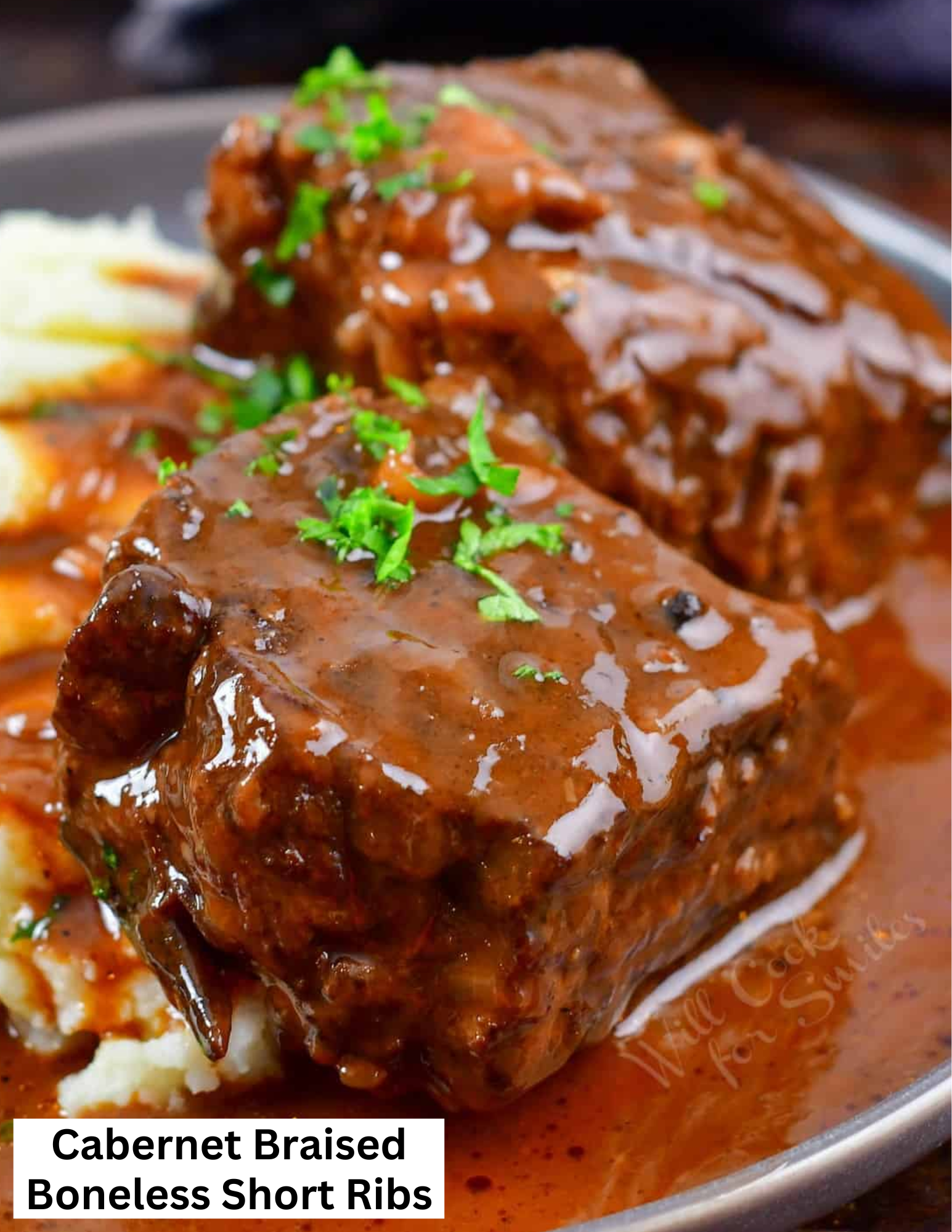 Tender, boneless short ribs braised low and slow in a Cabernet wine reduction - delivering deep, savory flavor in every bite.