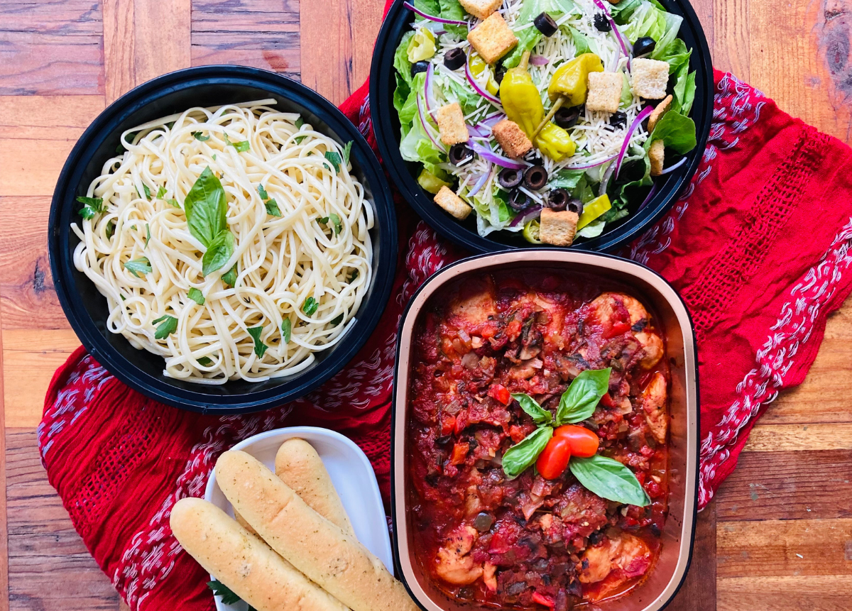tender chicken breast braised in tomatoes, red wine, and fresh herbs