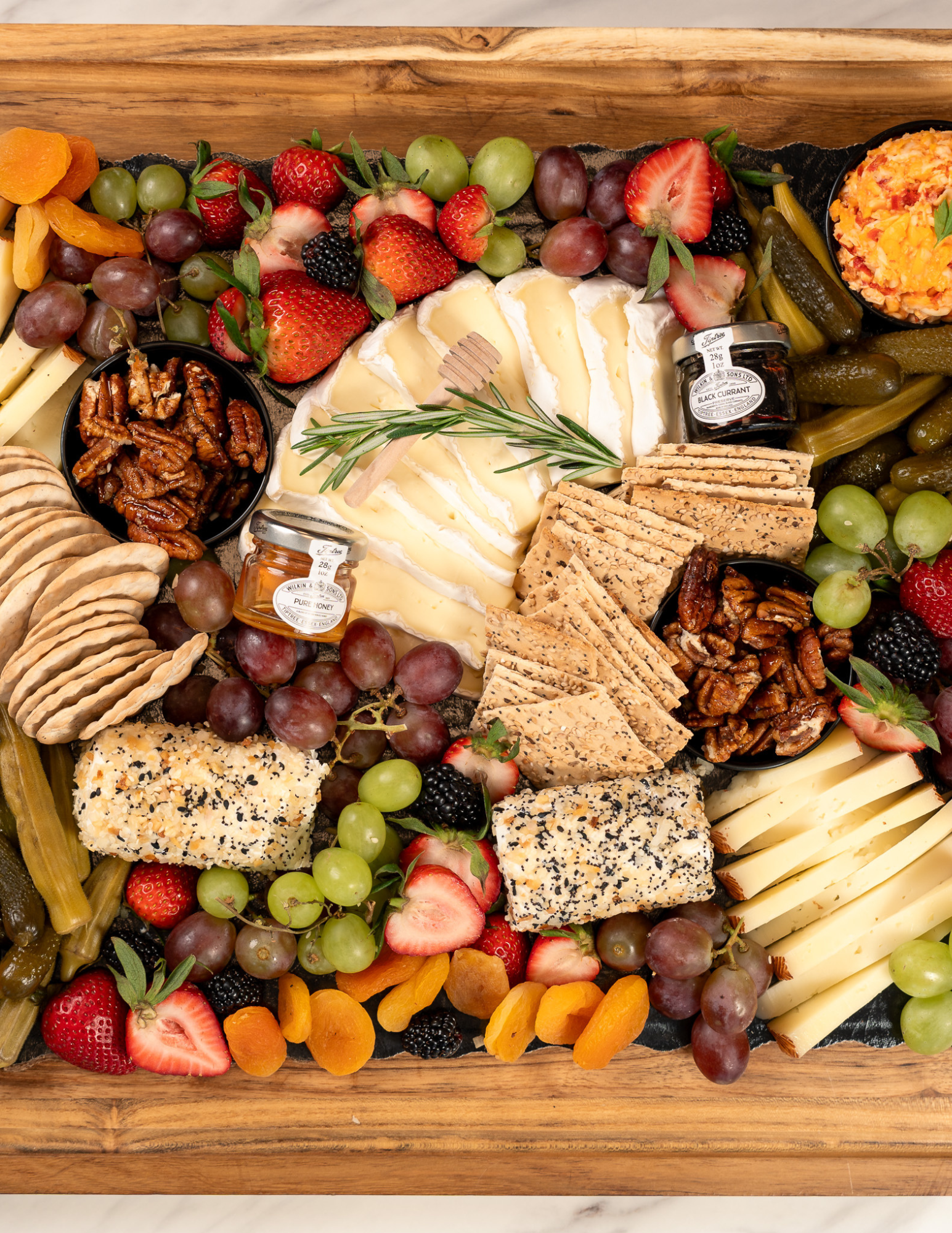 Board features assorted cheeses, charcuterie, specialty crackers, assorted fruit, and signature social garnishes. Items may vary from what is pictured.
